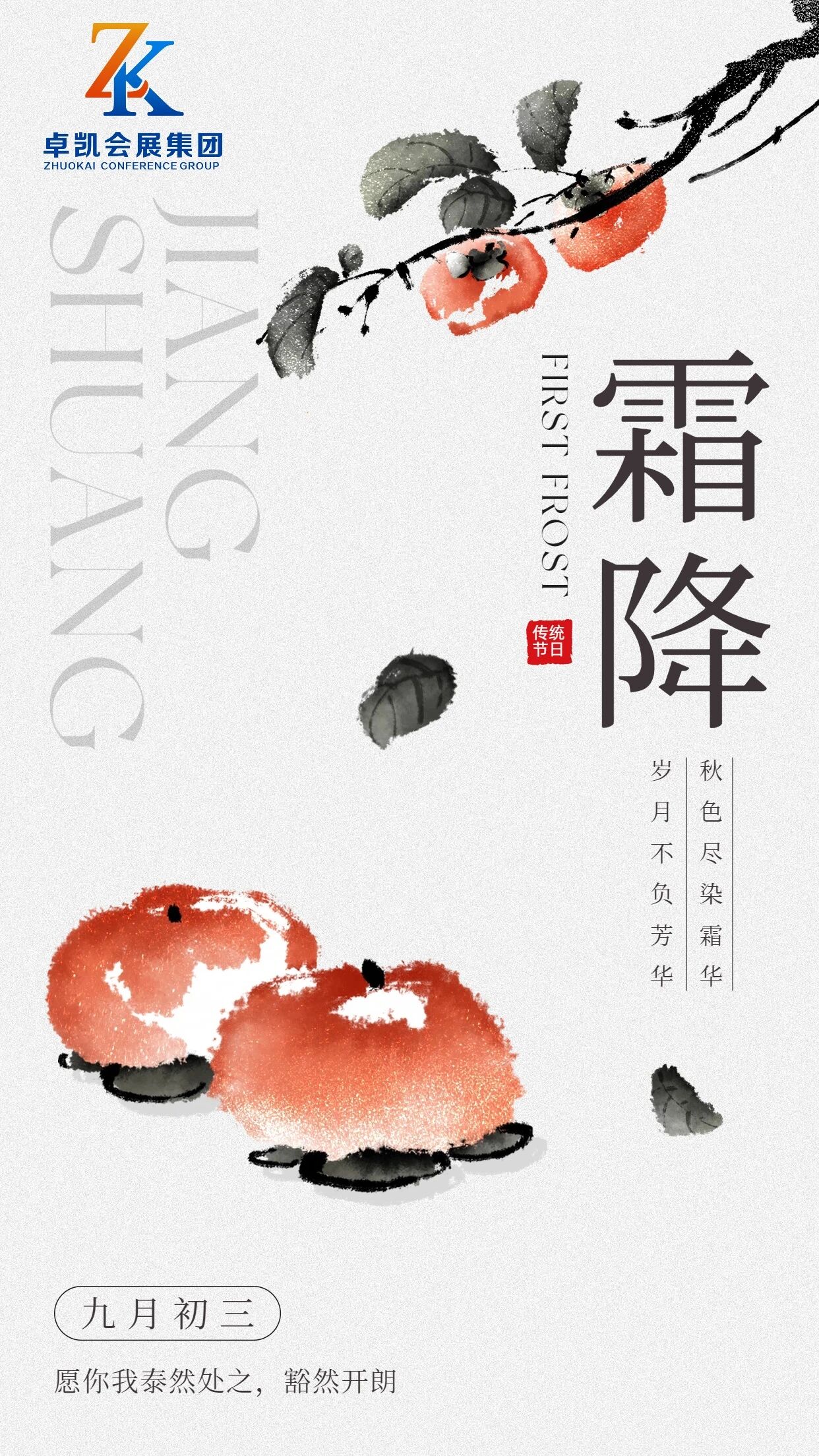 霜降,二十四节气之一,霜降节气含有天气渐冷、初霜出现的意思,是秋季的最后一个节气,也意味着冬天的开始。霜降节气有吃柿子、登高远眺、进补等习俗。