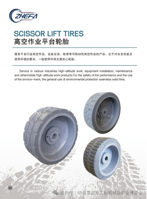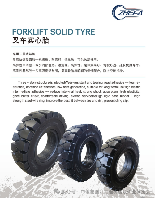 Hebei Zhefa Rubber and Plastic Technology Co.,Ltd.(formerly Hongyun Rubber Facto- ry)was founded in2000,The factory is located in theprovincial-level economic develop-ment zone of Guangchuan Town,Jing County,Hengshui City,Hebei Province,with a total asset of 120 million yuan and an area of 30000 square meters.It is a professional enterprise that integrates design,production,and sales.It has an excellent technical team,sales team, and advanced production line,with an annual production capacity of 500000 rubber solid tires.The products are widely used in fields suchas steelmills,glass factories,ceramicfac- tories,mines,construction,ports,airports,highway construction,and military vehicles,And products can be customized according to customer needs.60% of the company's products are sold in domestic supporting markets,and 40%are exported to international markets such as Europe and America.